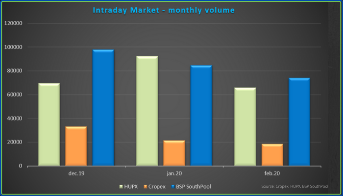 We have noticed a significant increase of trading volume on Intraday market on BSP SouthPool. Trading volume in December 2019 reached 98 GWh, in January 2020 85 GWh and in February 2020 74 GWh. Number of trading participant has increased even by 2,5-fold.